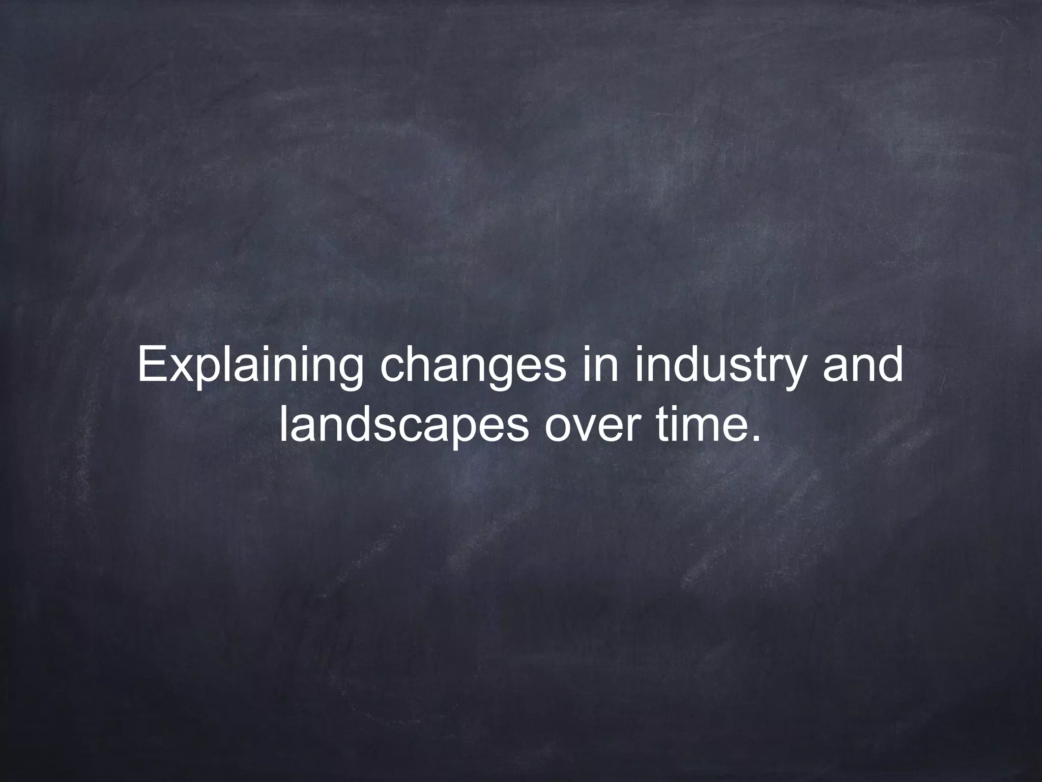 This document discusses key concepts related to changes in industry and landscapes over time: