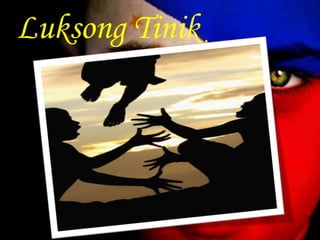 The document describes several traditional Filipino games including Luksong Tinik (jumping over thorn bushes), Tumbang Preso (hitting a tin can with a slipper), Sipa (kicking a threaded object in the air), Palo-sebo (climbing a greased pole), Sekqu Base (a variation of tag with no score limits), Jack En' Poy (a version of rock-paper-scissors), Patintero (a variation of tag played on lines), Langit Lupa (tag where players can touch "heaven" to avoid being tagged), Tamaan Tao (dodgeball), and Chinese Garter (jumping over a
