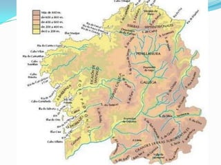 2. Observando o mapa de relevo de Galicia, divide o curso