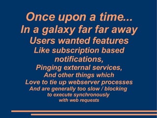 The document discusses TheSchwartz, an open-source queueing system for reliably processing asynchronous jobs. It describes problems with initial approaches like single daemon queues and multiple daemon solutions. TheSchwartz uses a database to store jobs and worker processes to reliably process them. Workers can handle one or more job types and jobs are pulled from the database to be processed. TheSchwartz has been used to process over 100 jobs per second for LiveJournal.