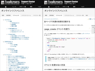 の サポートサービス • ThinReports の開発者が直接対応 • サポート内容 ✴ オンラインリファレンスの閲覧 ✴ QA サポート