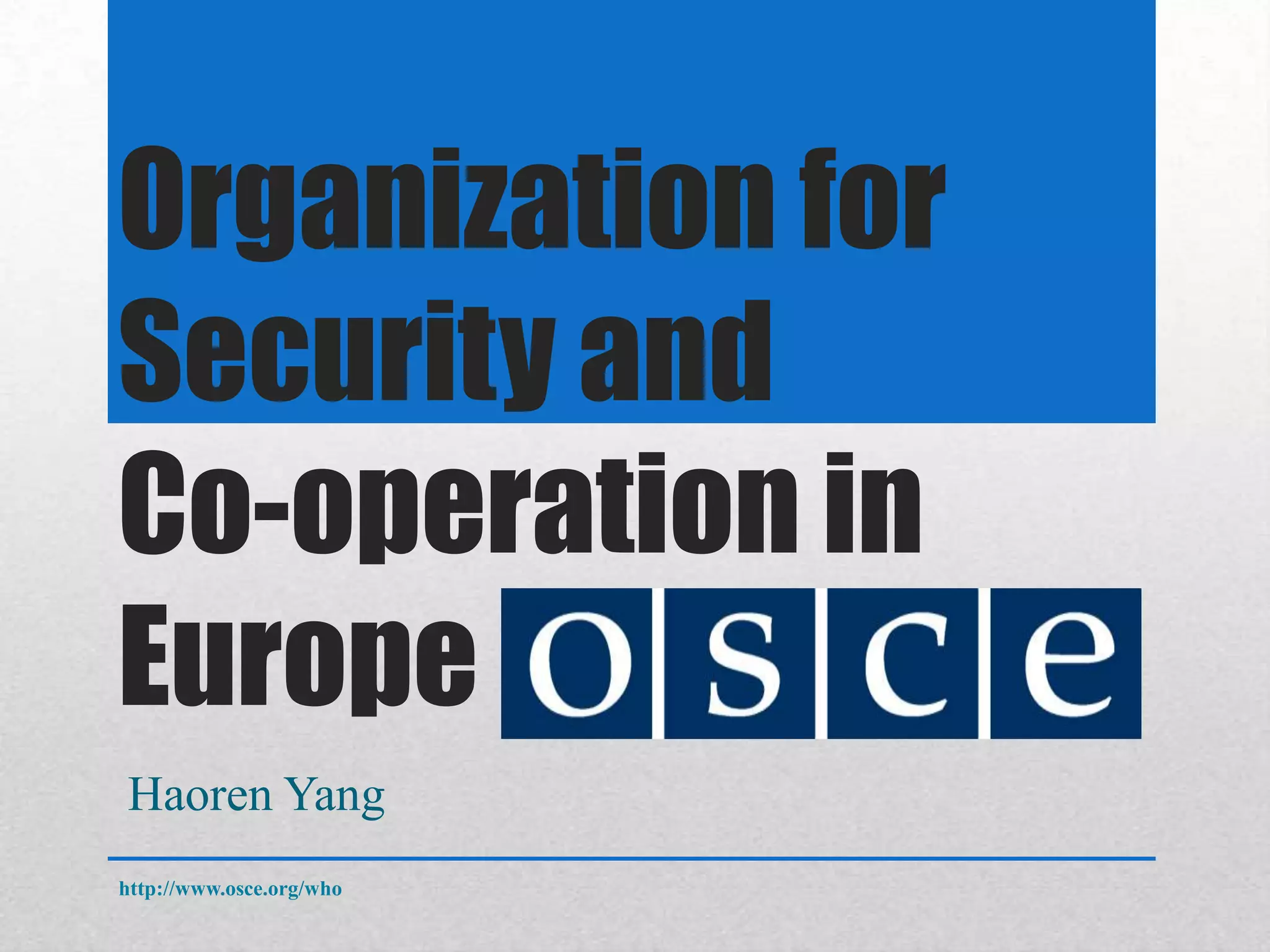 The Organization for Security and Co-operation in Europe (OSCE) is an intergovernmental organization that addresses security issues such as arms control, human rights, freedom of the press, fair elections, conflict prevention and crisis management. It is composed of 57 participating states, 11 partner countries, and has a budget of 145 million euros. Originally beginning as the Conference on Security and Co-operation in Europe during the Cold War to mediate talks between East and West Europe, finalizing the Helsinki Accords, the OSCE now stops the spread of illegal weapons, protects borders, prevents human trafficking and supports economic growth and gender equality.