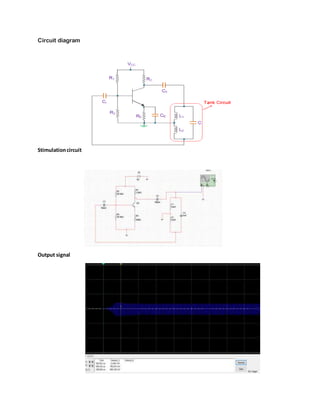 Oscillators convert DC to AC signals using a feedback loop that sustains oscillations. Common oscillator circuits include LC, RC, quartz, and relaxation oscillators. The Hartley oscillator uses a tapped coil and capacitor in a feedback loop to generate radio frequencies. The Colpitts oscillator also uses an LC tank circuit but with capacitors in the feedback path. The Franklin oscillator uses two transistors and an LC circuit, with each transistor inverting the phase to sustain oscillations. The Wein bridge oscillator is an RC circuit that produces sine waves with high quality resonance and tuning capabilities. Oscillators are used to generate signals for applications like radio transmission, testing equipment, and sensors.