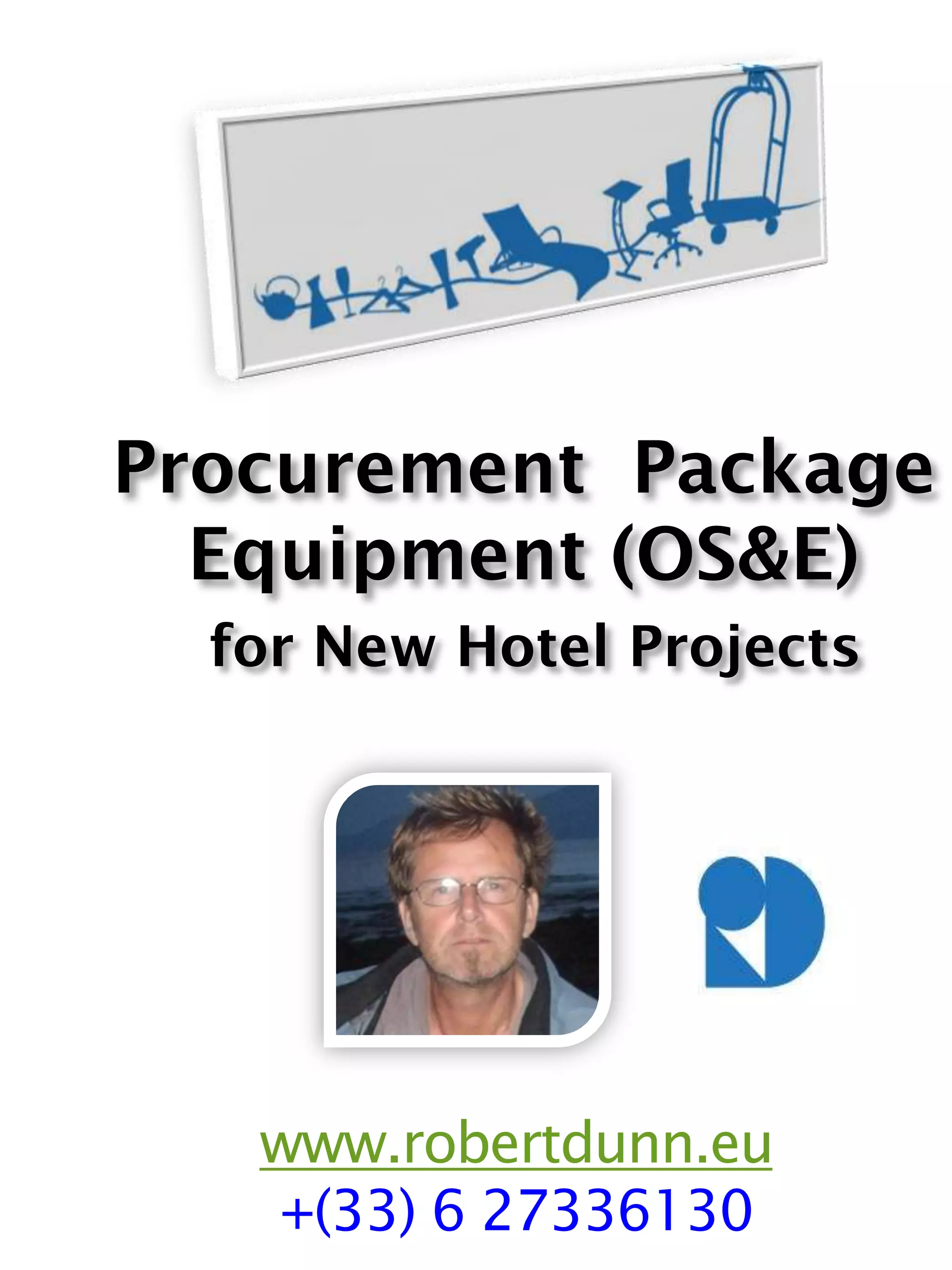 The document outlines the importance of procurement services for hotel equipment (OS&E) in new hotel projects, emphasizing the need for professional expertise to manage the complex variety of products required. It describes the comprehensive procurement process offered by the author, detailing steps from budget preparation to supplier negotiation and installation coordination. The focus is on ensuring quality, cost control, and adherence to luxury hotel standards while providing customized equipment lists and leveraging a vast supplier network.