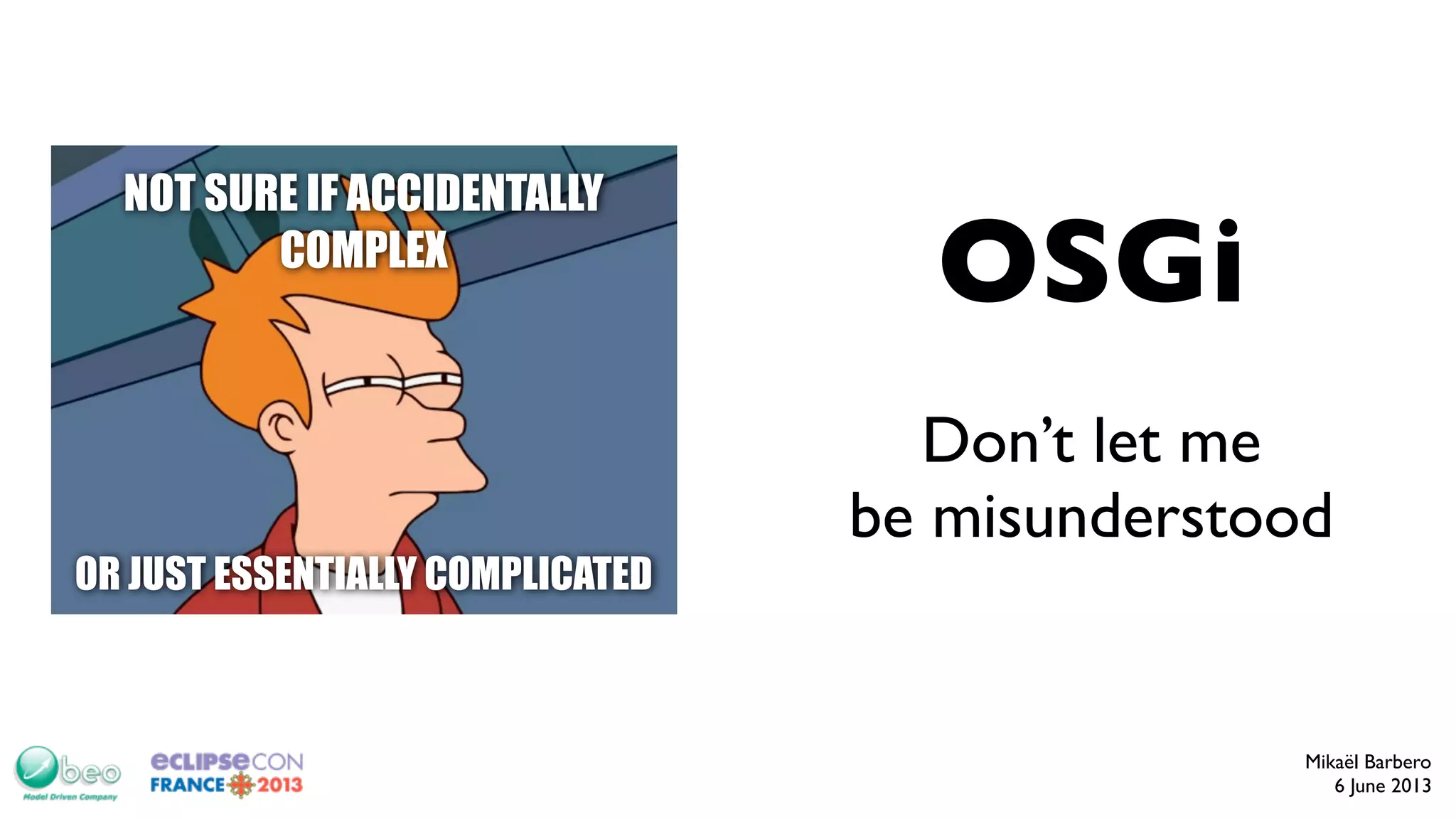 The document discusses the principles of modularity in software engineering and OSGi in particular. It notes that OSGi aims to minimize changes needed to support evolution while maintaining modularity. This is achieved through techniques such as unique class naming, package versioning, and services that enable loose coupling between modules. The document cautions that subtle differences between module identity and artifacts can cause issues if mixed up. It also explores concepts like modules, services, lifecycles and security that OSGi utilizes to achieve modularity.