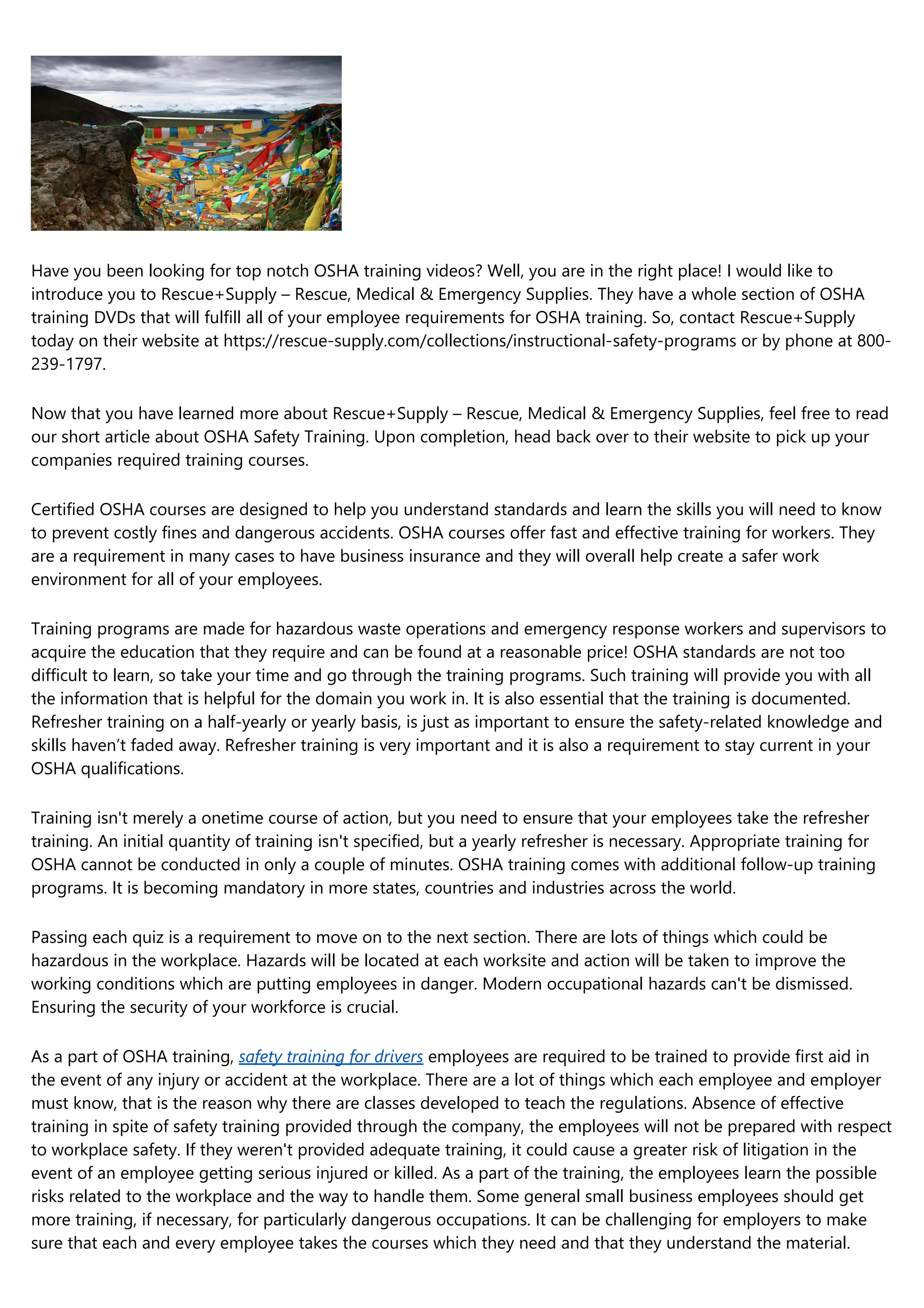 The document discusses OSHA training requirements and recommends Rescue+Supply as a source for OSHA training videos and courses. It notes that OSHA training is designed to help businesses understand safety standards, prevent fines and accidents, and create a safer work environment. Refresher training is also important to ensure safety knowledge doesn't fade. The document emphasizes that proper OSHA training is required by law and important for workplace safety. It recommends businesses purchase an OSHA training program to ensure all employees complete the necessary courses.