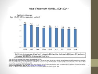 - Region 5 had 140 fatalities in 2015, up 28 from the previous year. Falls and being caught in/compressed by equipment