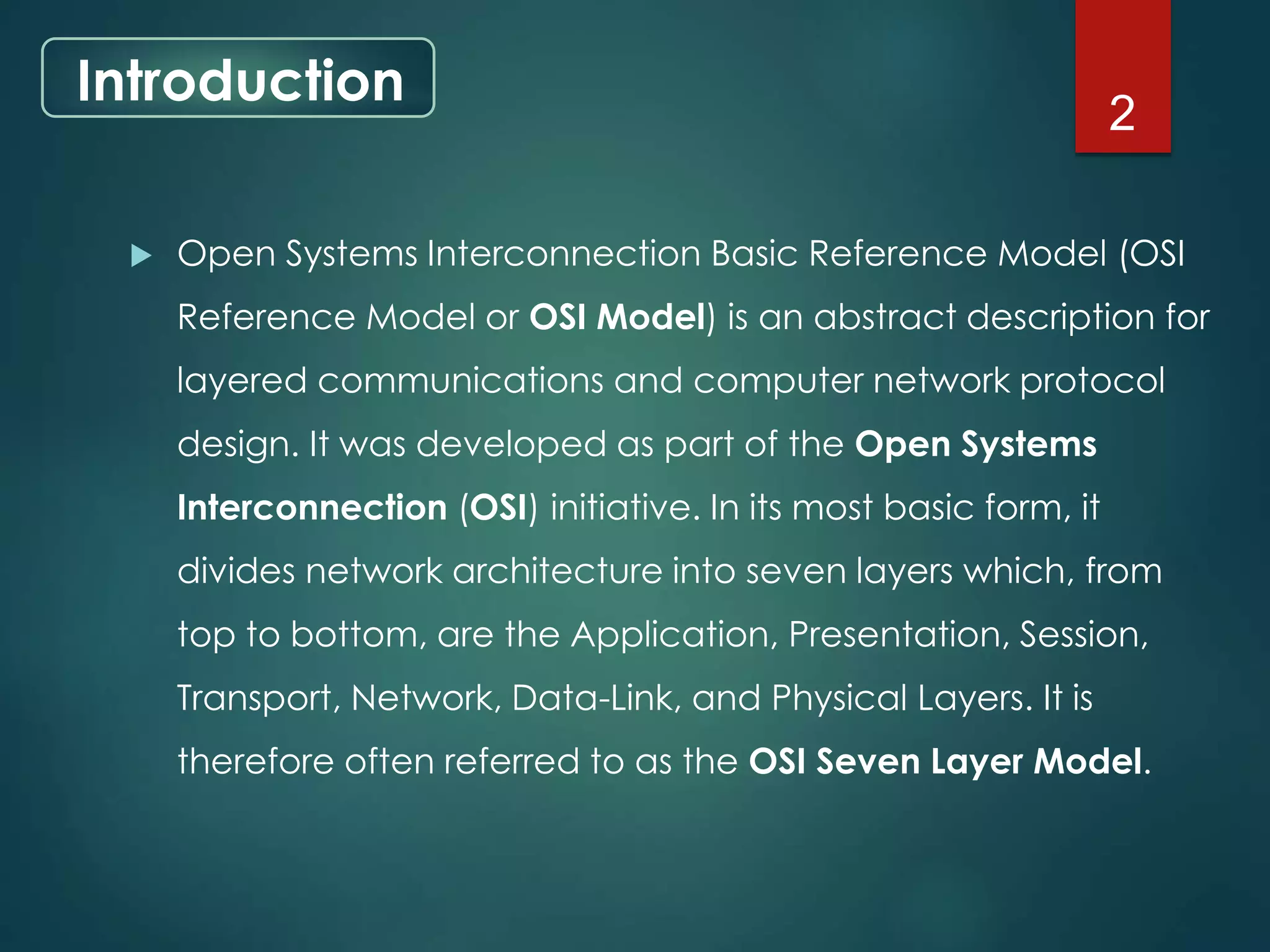 The document describes the Open Systems Interconnection (OSI) reference model, which is an abstract description for layered communications and computer network protocol design. It divides network architecture into seven layers from the physical layer dealing with transmission of raw bits up to the application layer dealing with services for users. Each layer has specific responsibilities and concerns such as framing data, addressing, error control, and providing services like file transfer. The model is important for standardizing how network communication should work across different hardware and software platforms.