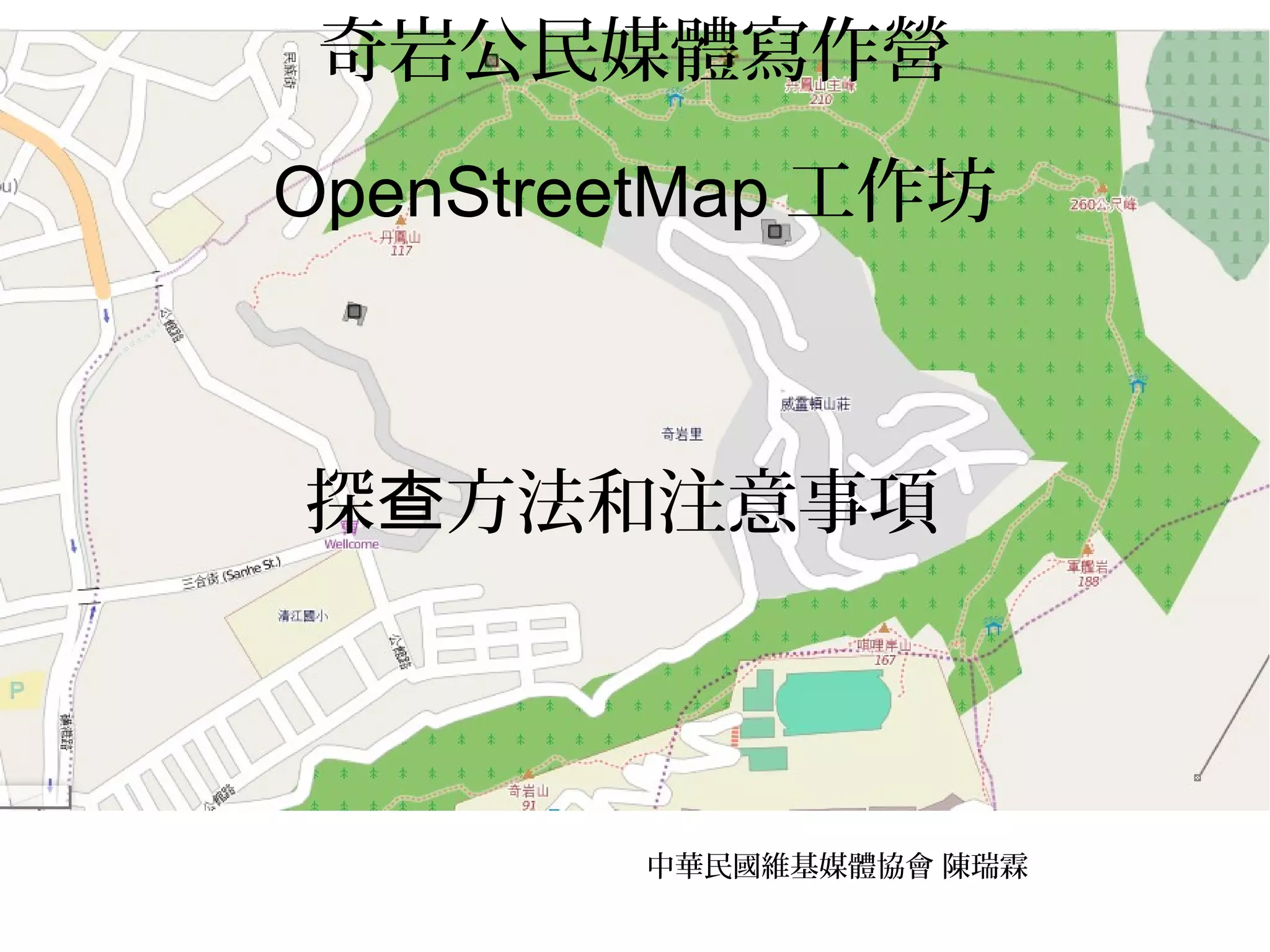 本文介绍了奇岩公民媒体写作营的 OpenStreetMap 工作坊,涵盖如何使用行走纸记录地理信息以及在实地考察中应注意的事项。文档提到记录自然景观、街道名、重要交通节点和公共建筑等多种信息,同时强调了分组探查的有效性与安全注意事项。