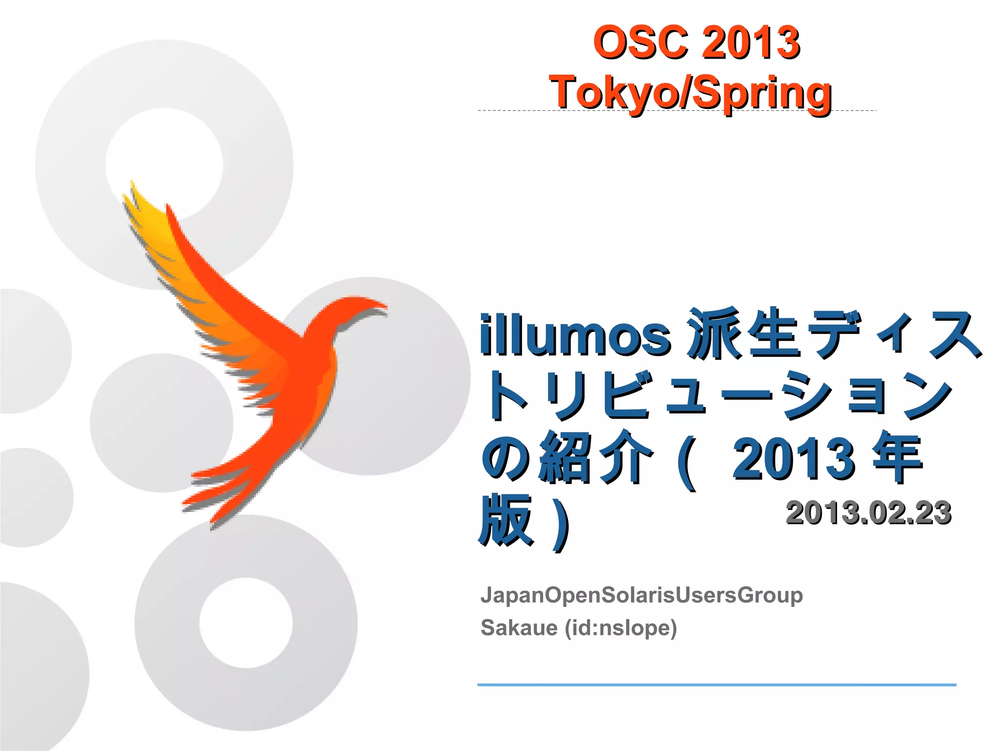 • 唯一のSPARC用illumosディストリビューション(2013/02時