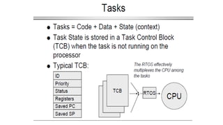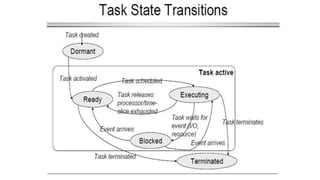 This document discusses criteria for CPU scheduling and optimization in operating systems. It covers metrics like CPU utilization, throughput, turnaround time, and waiting time. The key goals of optimization are to maximize CPU usage and throughput while minimizing times. Real-time requirements can be soft or hard, with hard deadlines requiring failure prevention. Real-time kernels provide benefits like abstraction of timing, modularity, and improved efficiency. Linux uses scheduling algorithms like FIFO, round robin, and completely fair scheduling to optimize these metrics.