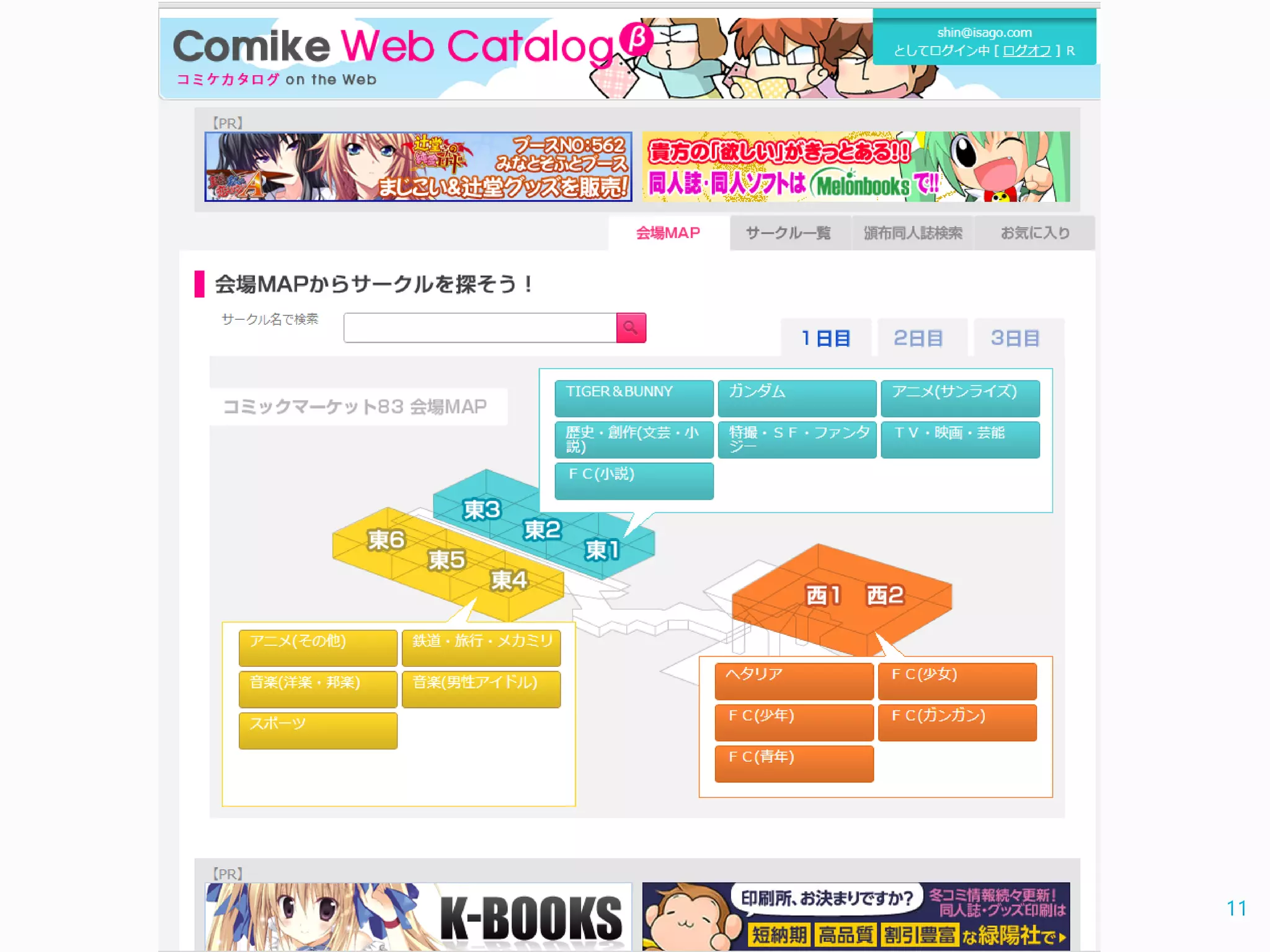アンケート分析 3日間で4,203名の来場者にスレートPCによるアンケートを実施。コミケ来場者数を 約50万人とすると約1%のサンプルを集めることができた。全体の1割程度がIT業界関係者 との仮説でいたが、想定を上回る相関の高さが判明している