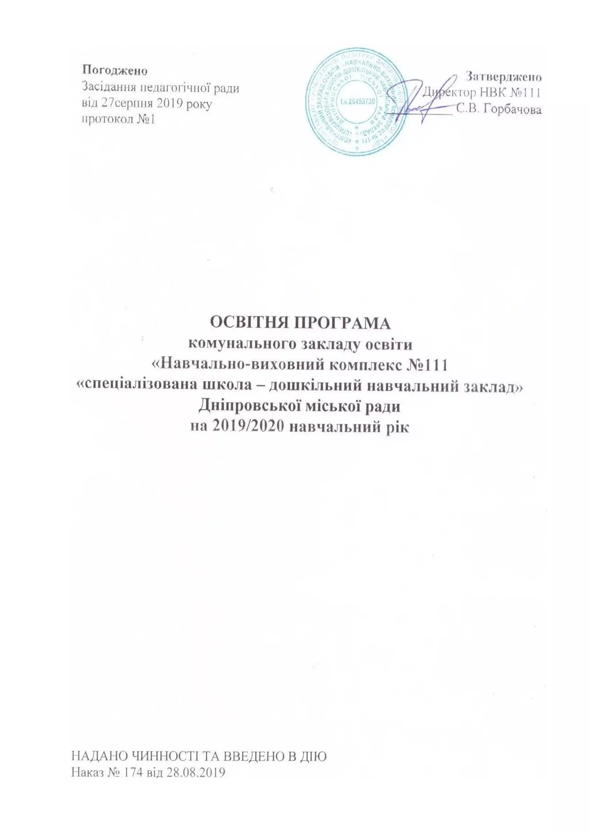 Освітню програму для 1-2 класів розроблено відповідно до Закону України