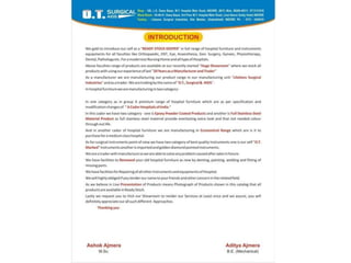 We glad to introduce our self as a " READY STOCK KEEPER " in full range of hospital furniture and instuments equipments for all faculties like Orthopaedic ,ENT ,Eye , Anaesthesia , Gen . Surgery , gyanaec ,phyisiotherapy,Dental, Pathology Etc. For A Modernize Nursing Home and All type of Hospitals. HI-Low ICU Bed Electric Syringe And Needle Destroyer Ceiling Operation Light Examination Table Electric Blood Donor Couch Electric