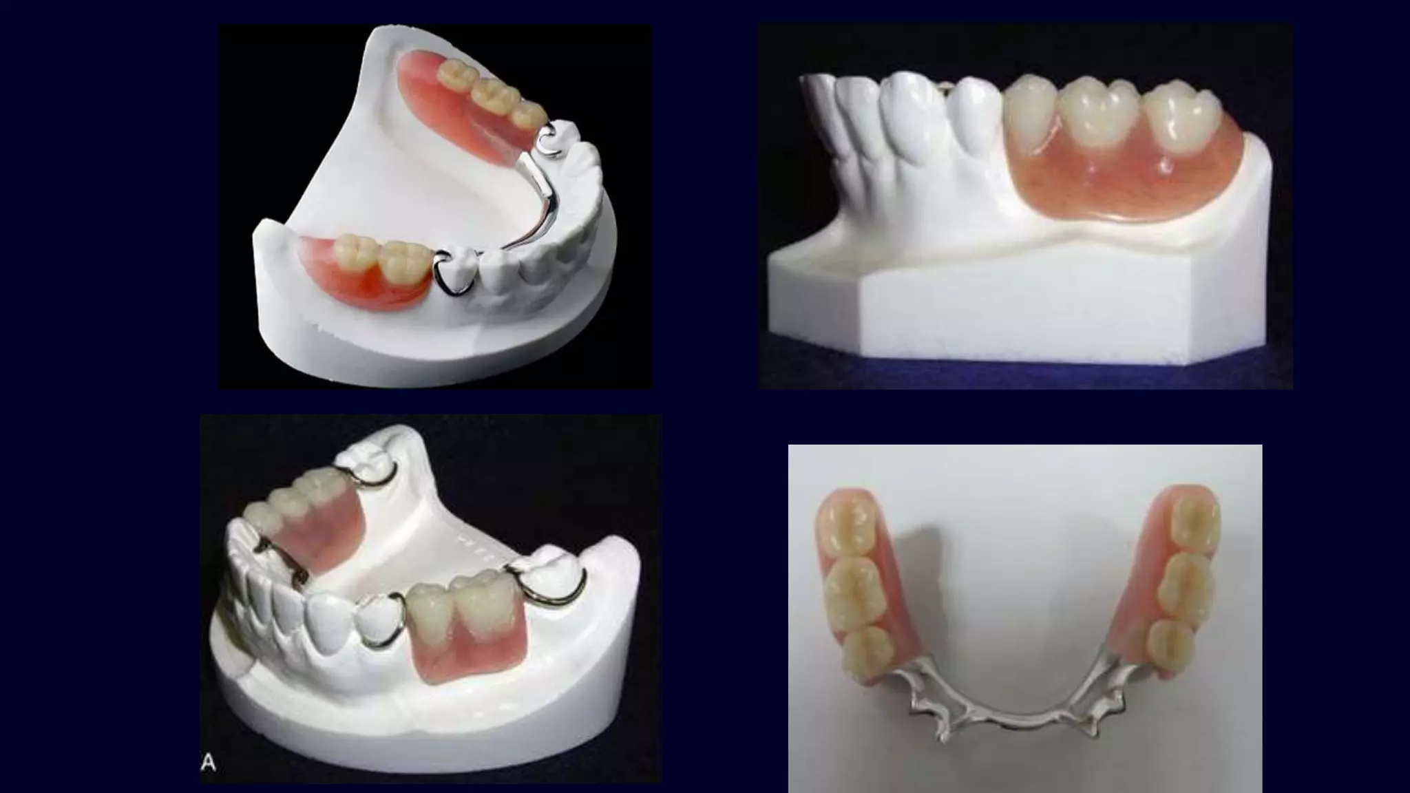 This document discusses various types of removable partial dentures (RPDs), including unilateral RPDs, swing-lock RPDs, overlay partial dentures, implant-supported RPDs, and attachments for RPDs. It provides details on the design, indications, advantages and disadvantages of each type. Key types discussed include overlay partial dentures, which are constructed over remaining natural teeth for additional support and retention, and attachments for RPDs, which can improve retention and are either precision attachments that are prefabricated, or semi-precision attachments that are fabricated in the dental laboratory.