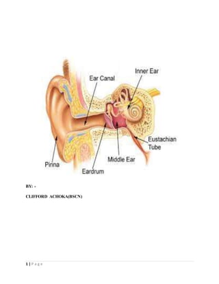 The document provides a comprehensive overview of otitis media, including its definition, epidemiology, clinical manifestations, and management strategies for a 6-year-old male patient diagnosed with the condition. It outlines patient demographics, relevant history, and investigative procedures, such as otoscopic examination and tympanometry. Management recommendations emphasize the use of amoxicillin as the first-line treatment to address the primary pathogens involved.