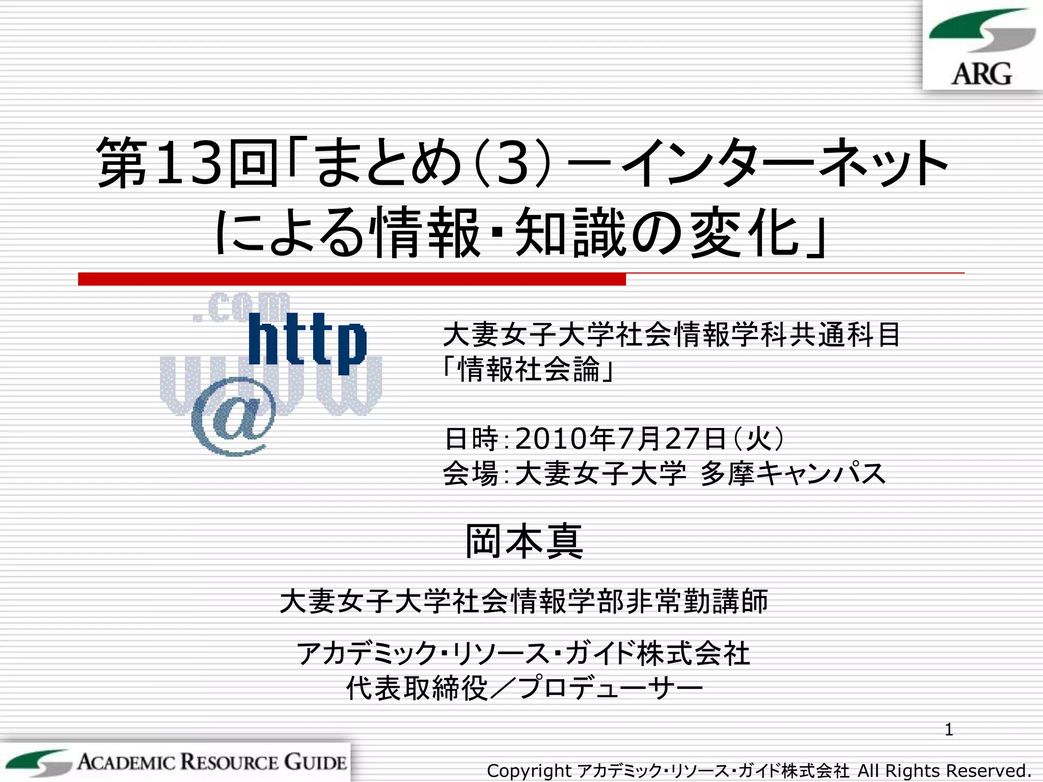 第12回 7月20日 まとめ(2)-インターネットによる情報・知識の変化(学生の発表中心)