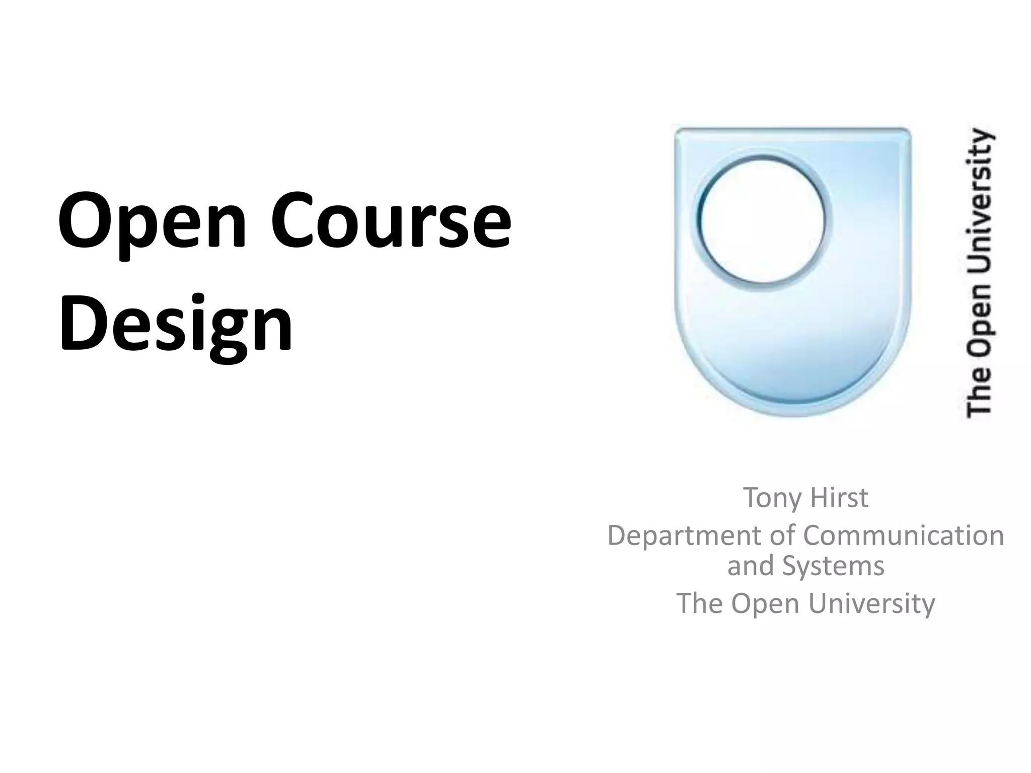 This 3 sentence document discusses open course design and being open to different people, places, methods, ideas, and content. It references taking course content open and digital worlds as well as an "uncourse." The document notes that any opinions expressed are only those of the author.