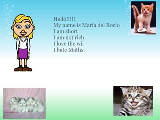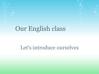 The document contains introductions from students and a teacher in an English class. The students provide their names, ages, hometowns, favorite colors, subjects, sports teams, and other personal details. The teacher introduction includes her name, hometown, favorite color and that she enjoys teaching but can be grumpy.