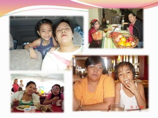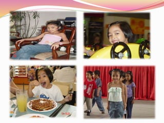 This document appears to be a list of names and short phrases that are related to a child's life and family. It mentions being excited for school, playing, Halloween, and relationships with family members including Papa's Girl, Mama's Little Princess, and several Tita's and Tito's.