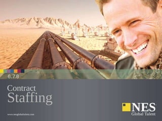 This document summarizes the services provided by a staffing company. They offer guaranteed staffing solutions using discipline-specific consultants to source talent globally. Their services include payroll administration, funding, taxation compliance, insurance, emergency support, and more. They provide contract staffing, project staffing, specialist staffing, and help with mobilization, visas, orientation, accommodation, travel, health and safety. They also offer training, workforce assessment, recruitment process outsourcing, and contingent workforce management solutions to help clients find and develop talent.