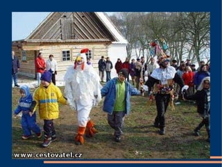The document discusses various holidays and events celebrated in the Czech school calendar, including summer holidays from July to August, Christmas holidays in December and January, Easter in April, autumn holidays in October, Defence Day on June 1st, Halloween on October 31st, St. Nicholas Day on December 5th, New Year's Day on January 1st, and Carnival celebrations. It also mentions welcoming new students and the role of the Third Eye student association.