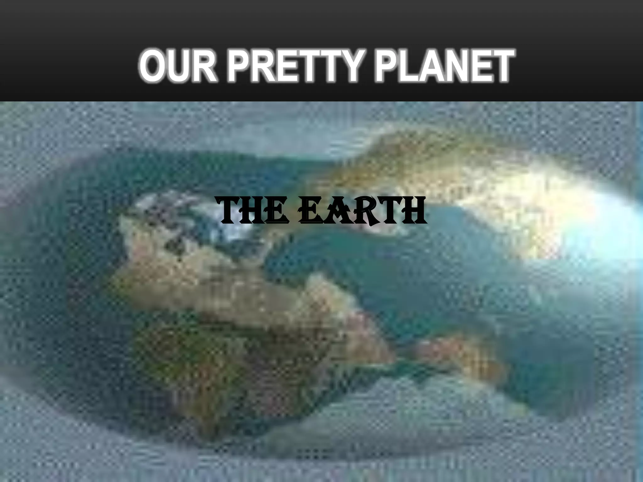 The document provides information about the Earth, including its position in the solar system, composition, layers, atmosphere, and movement of tectonic plates. It notes that the Earth is approximately 4.5 billion years old, orbits the sun in 365 days, rotates daily, and has a molten iron core that generates its magnetic field. The crust consists of continental and oceanic plates that slowly move over time, causing phenomena like earthquakes and volcanoes. The atmosphere protects the planet and is composed primarily of nitrogen, oxygen, and traces of other gases.
