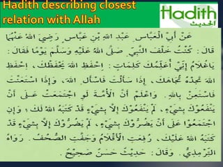 The document emphasizes the importance of a sincere relationship with Allah, where worship and obedience should be the primary motivations for all actions. It highlights various teachings of the Prophet Muhammad and Quranic verses about seeking Allah's pleasure, repentance, and the significance of remembering Allah. Additionally, it encourages maintaining strong faith and connection with Allah while avoiding distractions from worldly desires and influences.