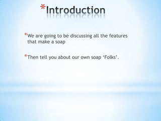 The soap opera is set in Folkestone, Kent and focuses on Allison Smith and her daughter Hope who escape abuse from Allison's husband Seth. They start new lives in Folkestone but Seth finds them. Allison begins a relationship with Nathan Green who helps protect them. However, Seth kidnaps Allison and Hope before being imprisoned. The soap involves storylines including a murder cover-up on a local farm and attempts at revenge against those who put Seth in prison. Main characters include Allison, Seth, Hope, Nathan, farmer Joe and his family who become targets of violence.