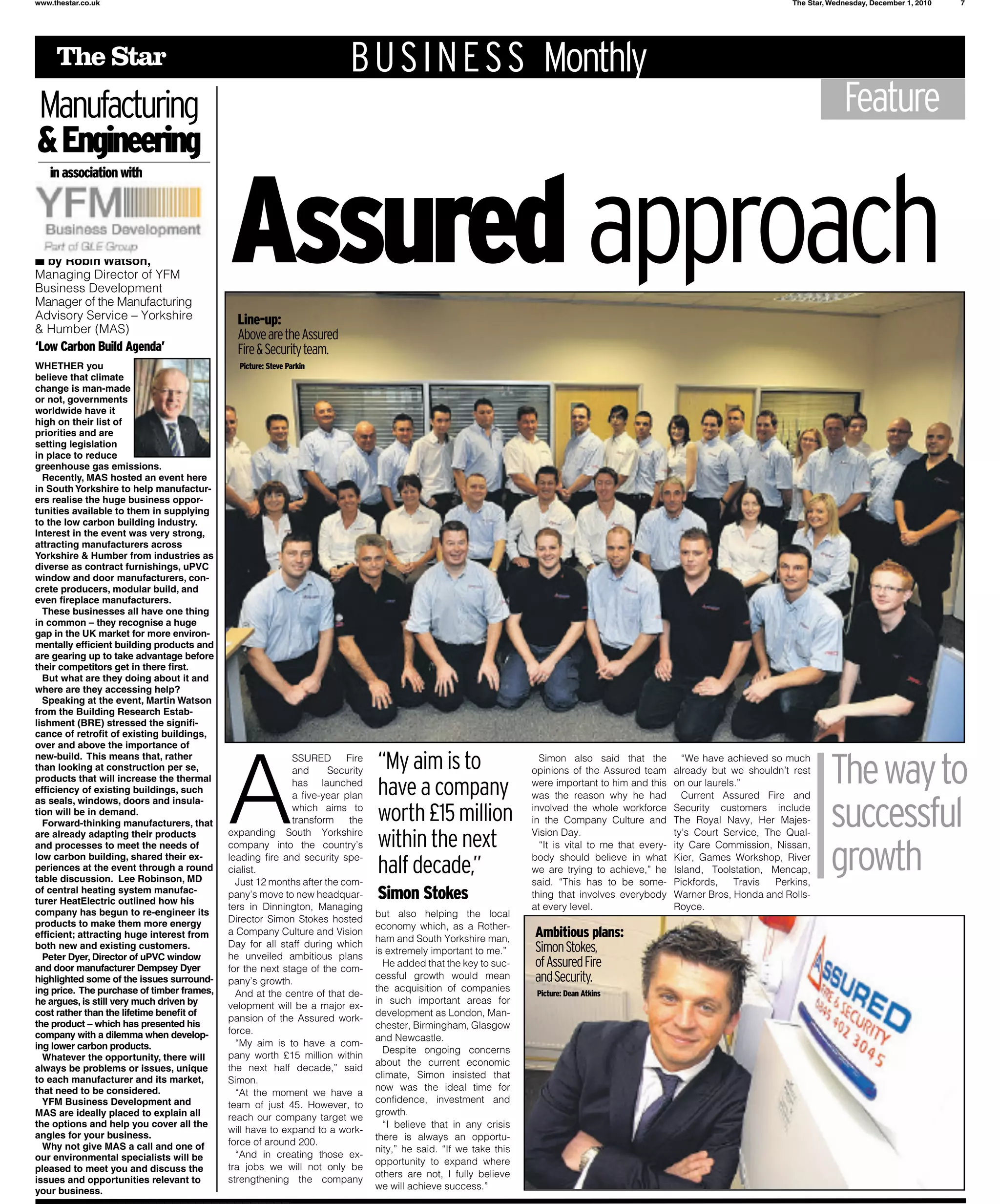 Simon Stokes, Managing Director of Assured Fire and Security, unveiled ambitious plans to expand the company. He aims to grow the company worth to £15 million and workforce to 200 employees over the next five years. This expansion would strengthen the company while also helping the local economy. Stokes believes that despite economic concerns, now is the ideal time for confidence, investment, and growth by taking advantage of opportunities when others are hesitant.