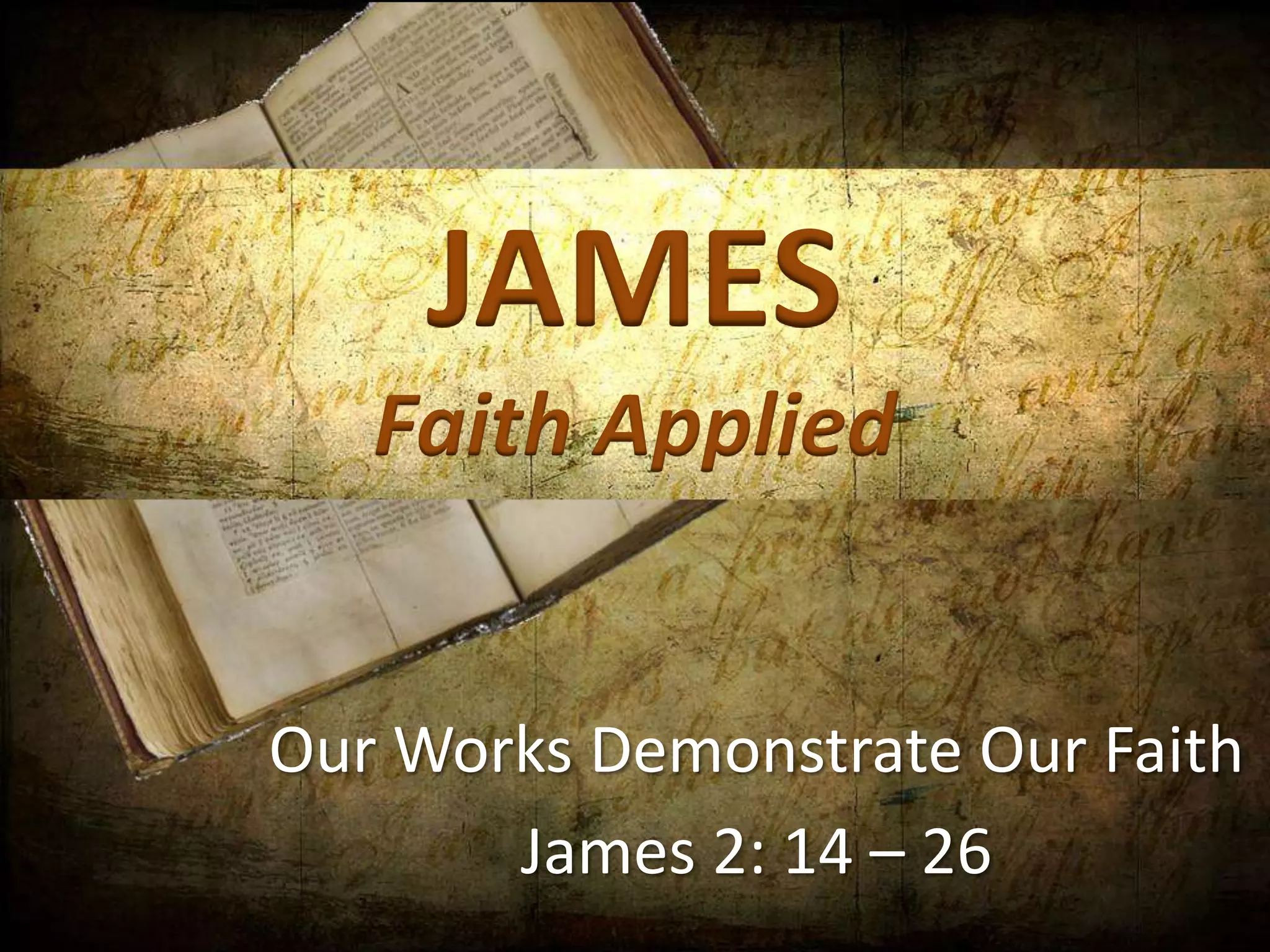Faith without works is dead. According to the document, James argues that true faith is demonstrated through our actions, not just our words. One must have both faith in God and allow that faith to drive good works in order to please God and attain salvation. The document uses several passages from James chapter 2 and Hebrews 11 to illustrate that faith without works is empty, but that true faith actively seeks God and inspires righteous deeds.