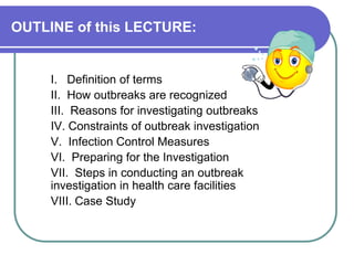 An outbreak of Burkholderia cepacia bloodstream infections occurred among newborns in the NICU, with 16 of 59 newborns infected over a month. This was a significant increase over the unit's typical infection rate of 2% per month. The ICC nurse investigated by learning about B. cepacia, verifying the diagnoses, establishing the outbreak, and defining cases. Preliminary findings identified a cluster of infections in October, with all blood cultures from within 24 hours of birth testing positive for B. cepacia. The source and mode of transmission were still unknown.
