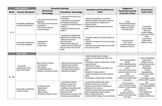 This document outlines an outcomes-based teaching and learning plan for a Fundamentals of Economics course. The course aims to acquaint students with fundamental economic principles relevant to the current situation in the Philippines and apply economic concepts to problems. Over 18 weeks, topics will include the basics of economics, demand and supply, national income, taxation, agrarian reform, and cooperatives. Learning will involve group discussions, presentations, journals and other assessments. The course is intended to help students understand humanistic science and apply technical skills to the environment.