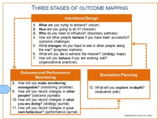 3. After the game, participants' reactions and the art created were analyzed using outcome mapping steps to demonstrate how it can anticipate outcomes and deal with complexity better than a traditional logical framework.