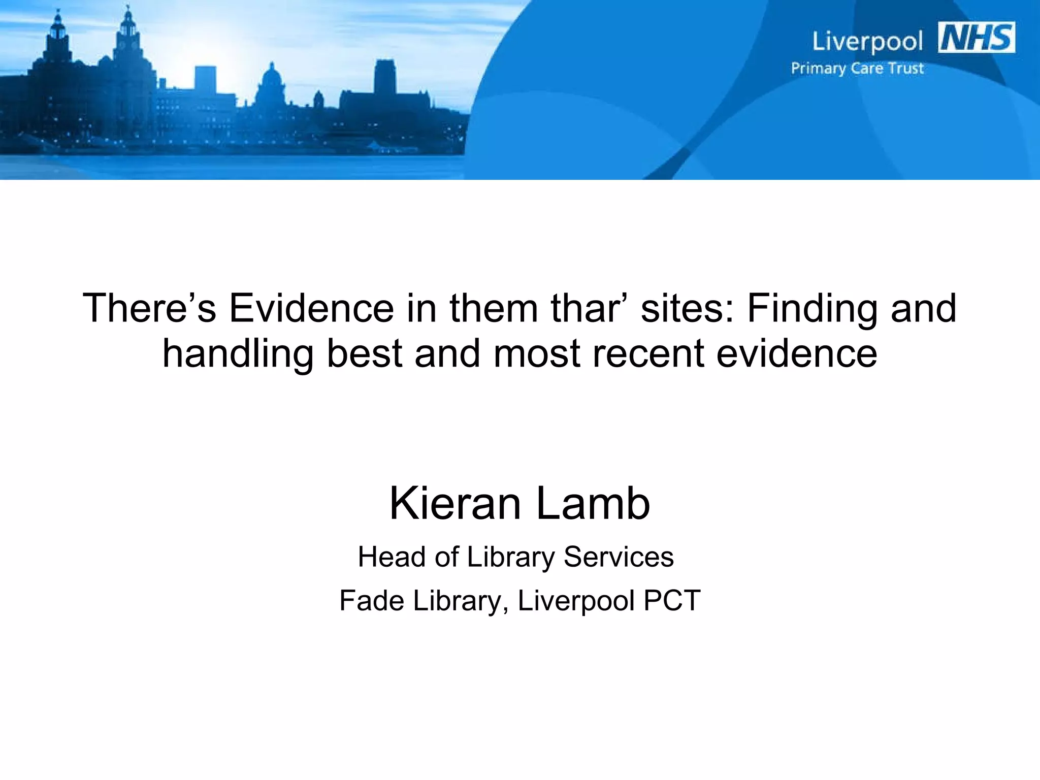 This document provides an introduction and overview of resources available at the Fade Library in Liverpool, UK. It describes key databases for evidence-based research, strategies for designing effective searches using Boolean operators and structured vocabularies, tools for assessing the quality and hierarchy of evidence, and ways librarians can support users through e-learning and further assistance.