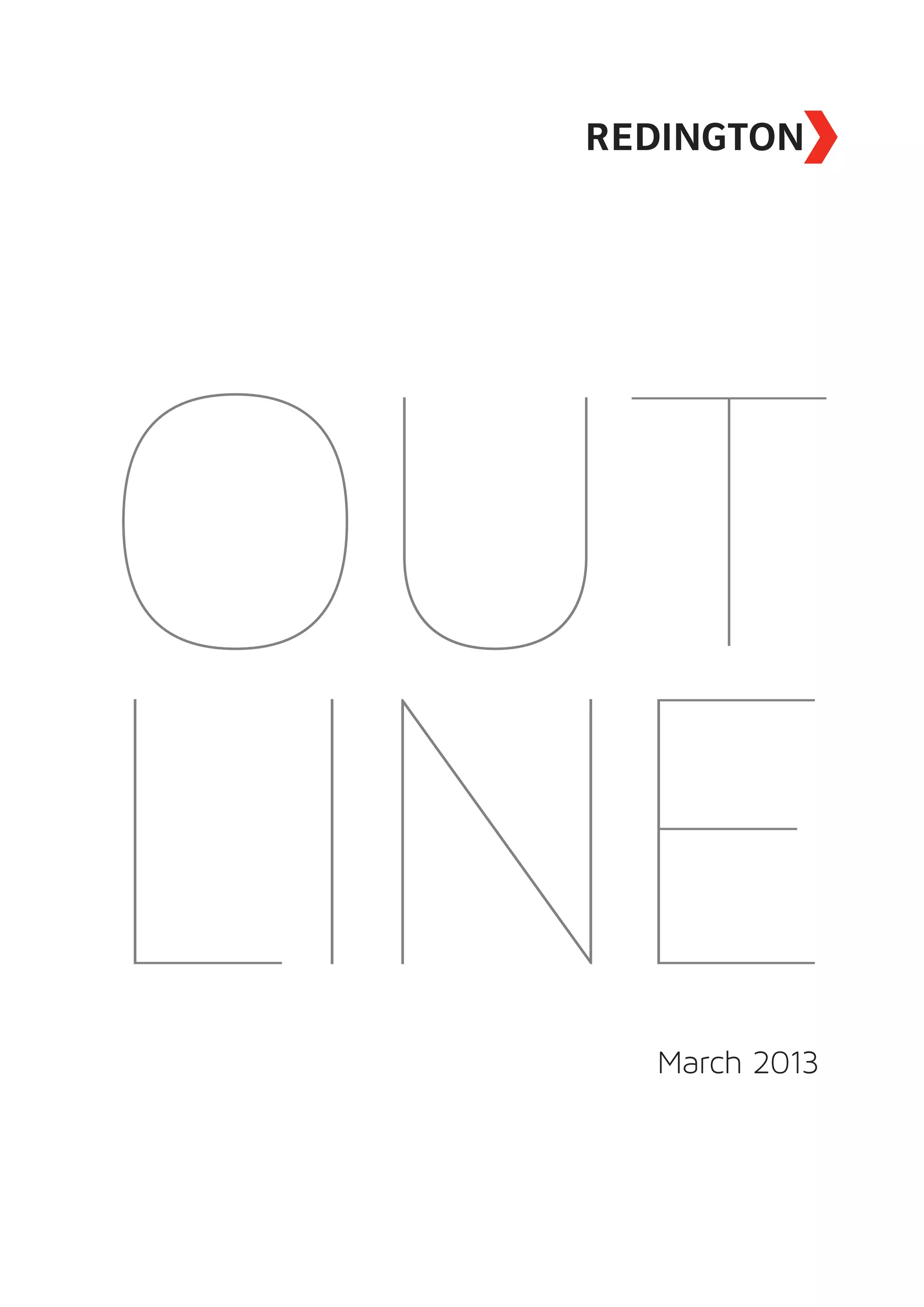 The document provides an outline for Redington's quarterly publication called "Outline" which features thought pieces on key investment topics for institutional investors.