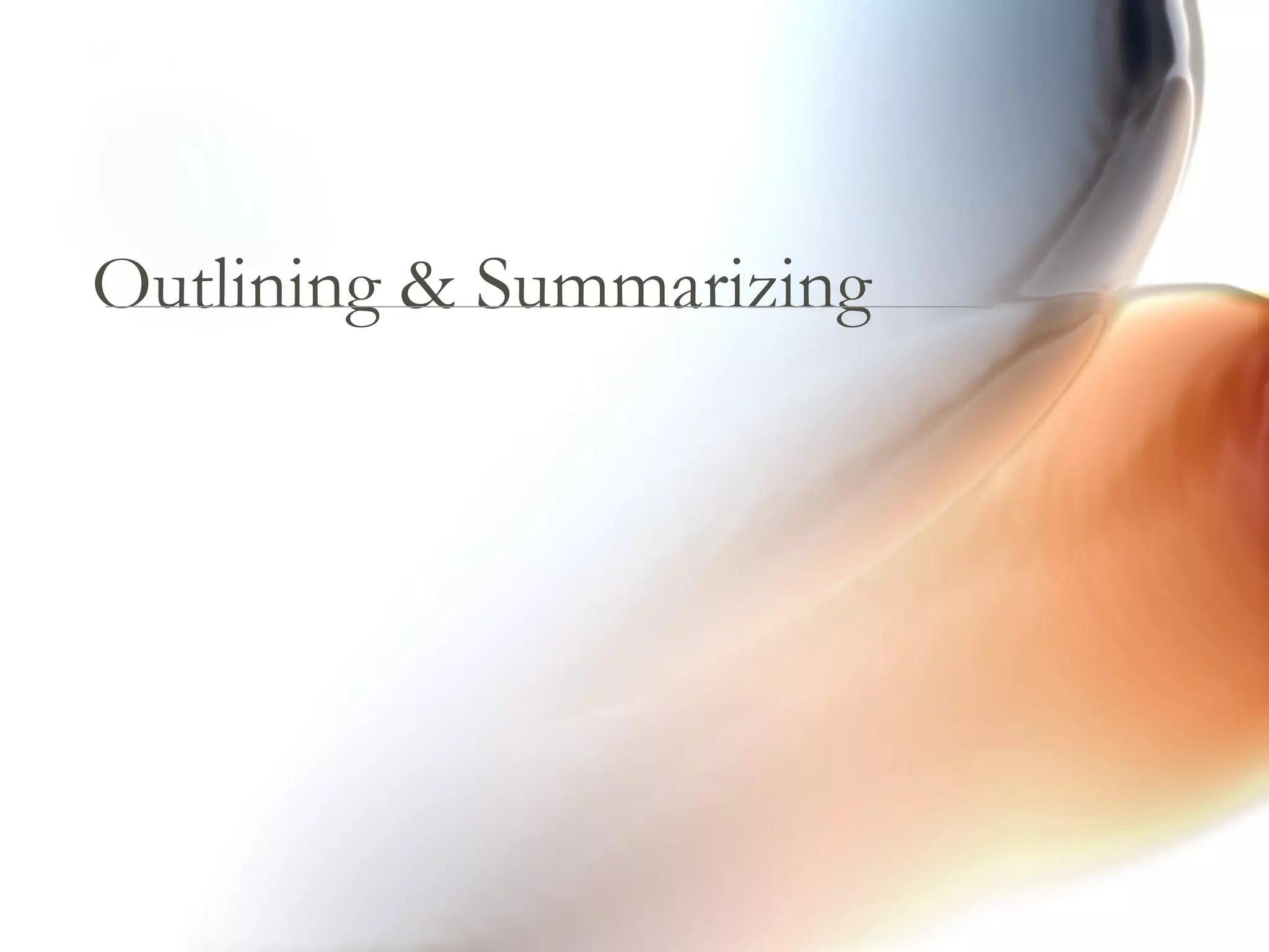 1. The document outlines rules for writing outlines and summaries, including logically organizing ideas with numbered and lettered headings and ensuring each heading has at least two parts.