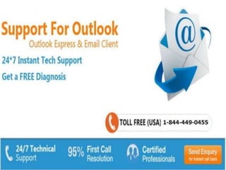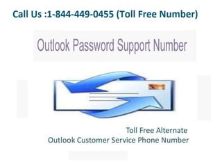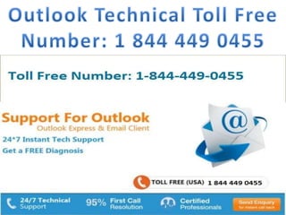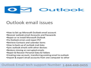 This document provides information about Outlook tech support services that can help with a variety of issues like password recovery, accounts being locked, not receiving emails, spam issues, and installation problems. It lists Outlook password security, recovery by phone, and reset as specific services offered, as well as support for operating system issues and software updates.