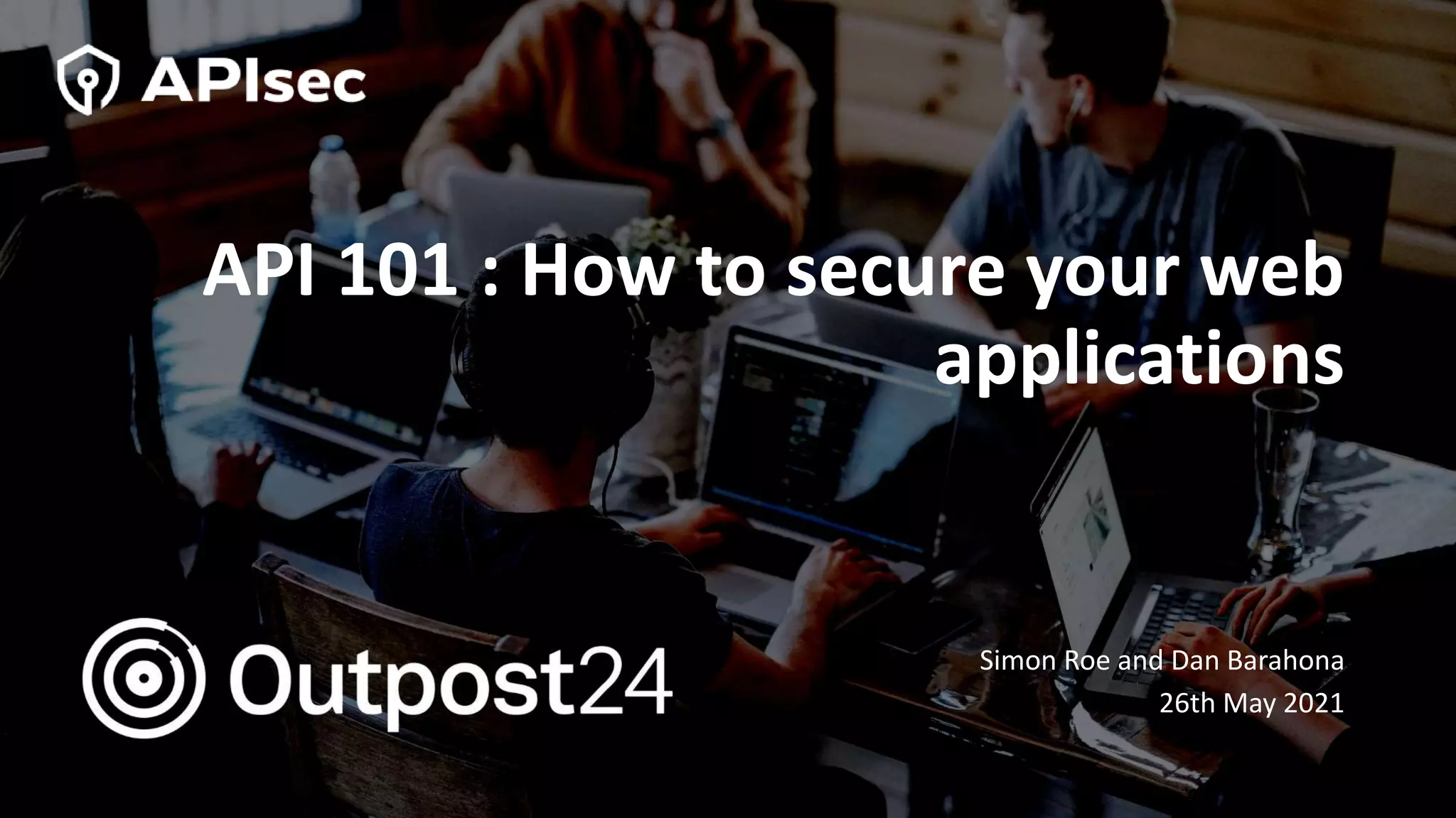 API 101 discusses how to secure web applications and APIs. APIs are used extensively in web and mobile applications to allow communication between services but this can introduce security weaknesses if not implemented properly. API attacks are a growing threat, with 90% of breaches targeting web applications and APIs projected to become the most common attack vector by 2022. The document outlines security best practices for securing APIs throughout the development lifecycle from design to testing to runtime, and how one company implemented API security testing to improve their compliance and privacy posture.