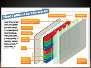 The document discusses various types of computer output devices, primarily focusing on monitors, including cathode ray tubes (CRT), liquid crystal displays (LCD), light emitting diodes (LED), and plasma displays. It covers their functionalities, technologies, advantages, and disadvantages, as well as the evolution from CRT to more modern display technologies. Key aspects include display quality, resolution, color output, and the characteristics of each display technology.