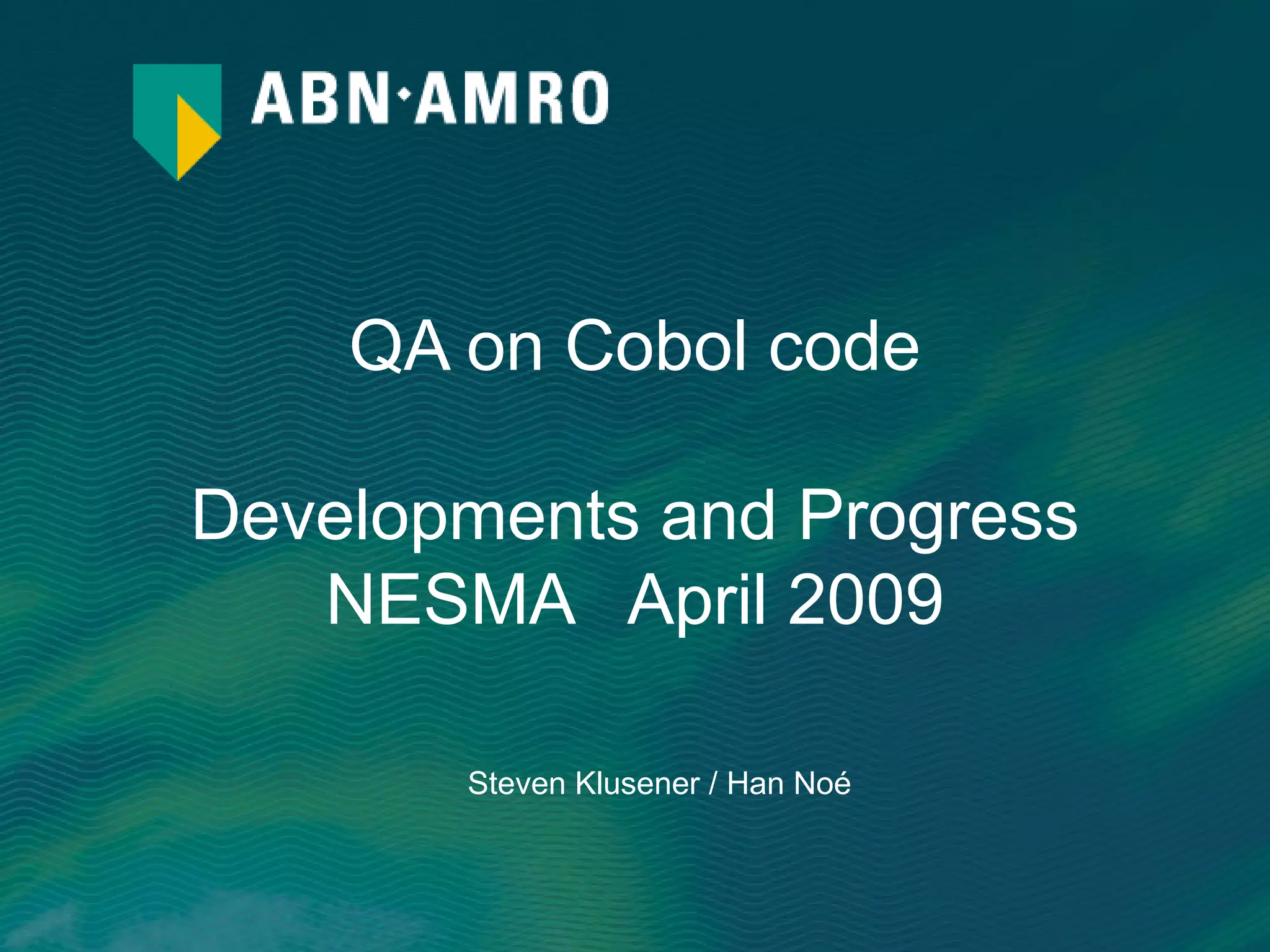 The document discusses quality assurance (QA) controls in COBOL code development at ABN AMRO, emphasizing the need for systematic QA to ensure software functionality and manage maintenance costs. It outlines the transition from a 'black box' to a 'grey box' approach, detailing the implementation of COBOL standards, automated scans, and ongoing validation of coding rules. Despite partial coverage, the document highlights the need for further formalization of complex rules and continuous updates to the COBOL standards handbook.