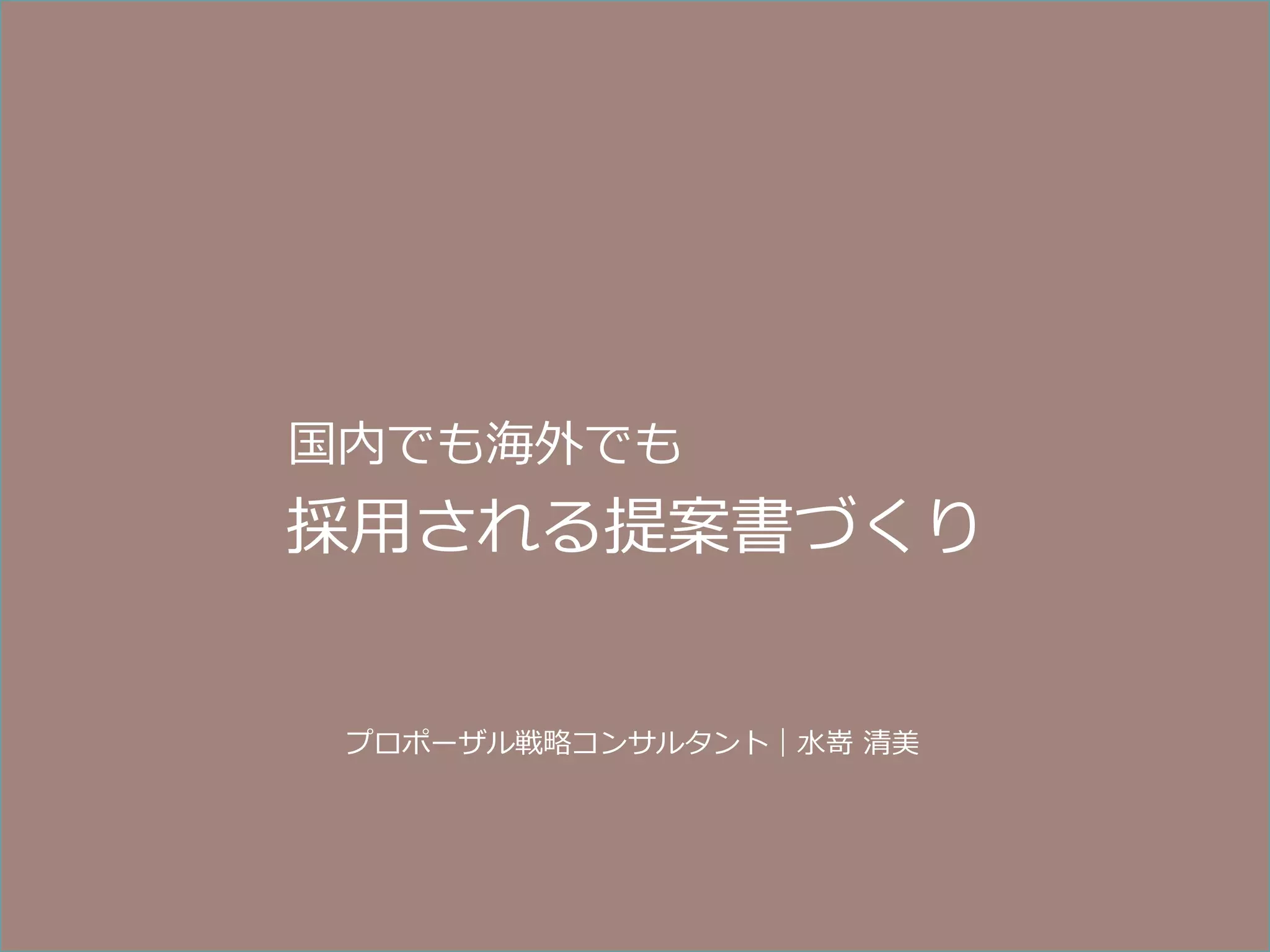 国内でも海外でも 採⽤用される提案書づくり プロポーザル戦略略コンサルタント|⽔水嵜 清美 Copyright ©