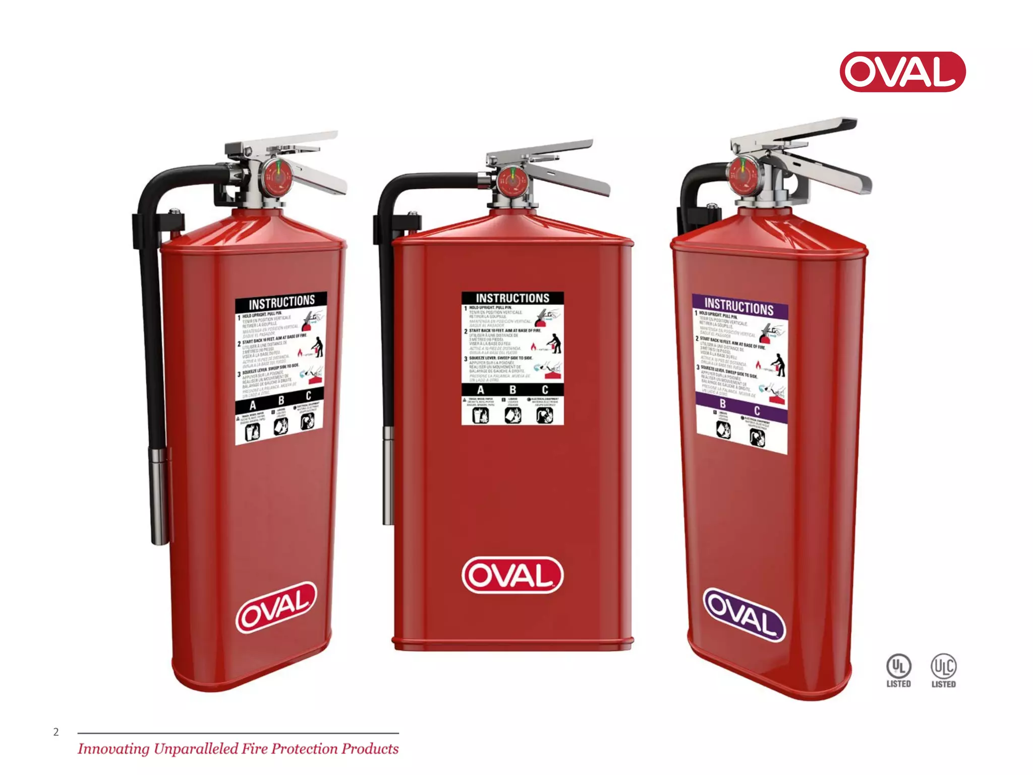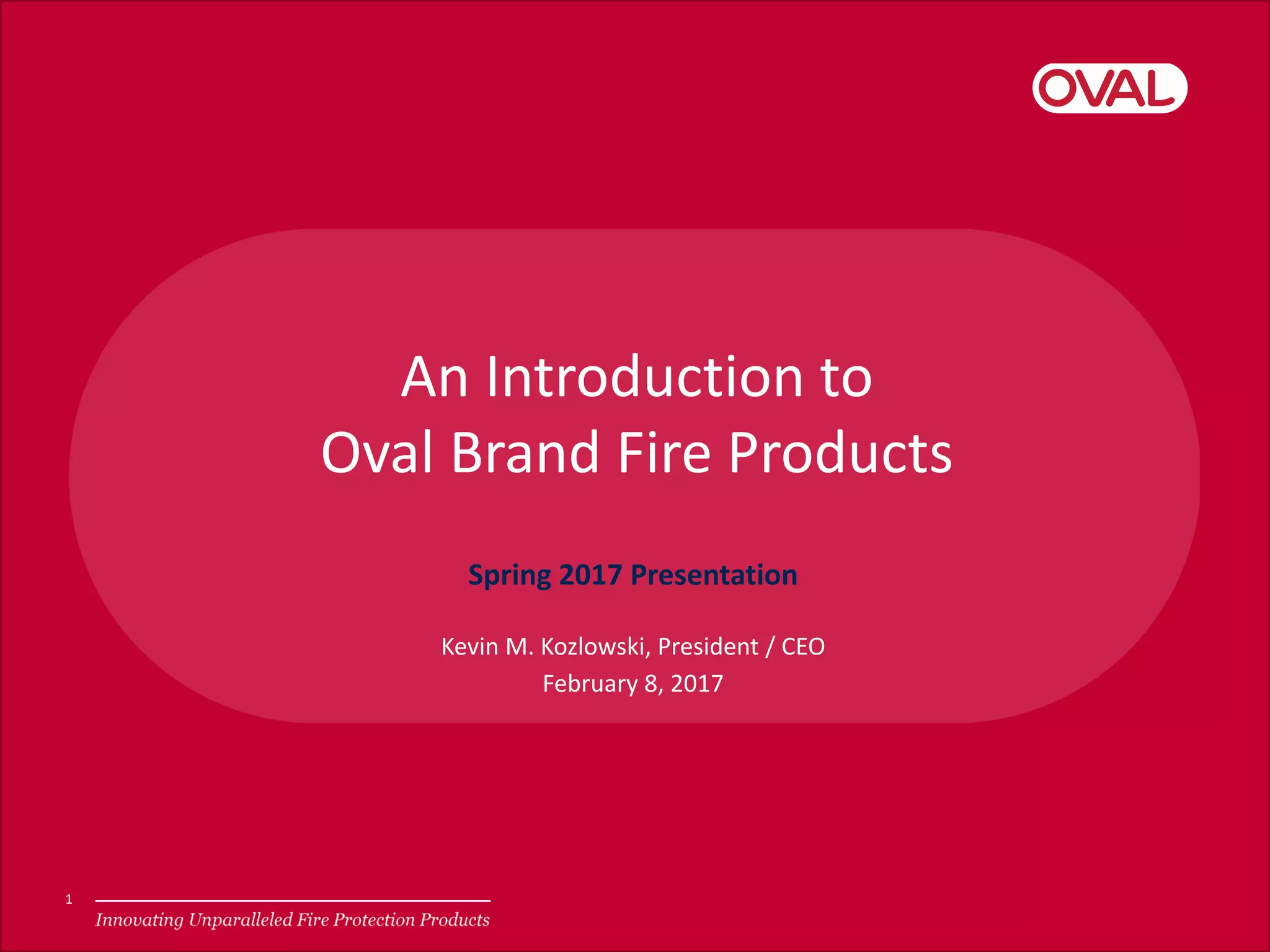 Oval Brand produces innovative fire protection products that solve common problems in the industry. Their patented oval-shaped fire extinguishers and standpipe valves protrude less than 4 inches when mounted, resolving ADA violations. This allows for recessed installation into thinner wall spaces and protects against damage. Oval Brand is working to submit their standpipe valve for testing and hopes to render competitors' non-compliant valves obsolete. They utilize new technologies like UPR codes to combat counterfeiting and provide excellent customer service.