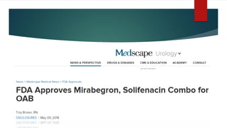 The document discusses overactive bladder (OAB) and its prevalence, symptoms, diagnosis, and treatment. It provides the following key points:
