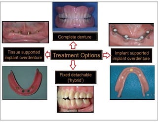 - Classifications of over dentures based on the type of support (tooth, implant, or mixed) and the timing of placement.