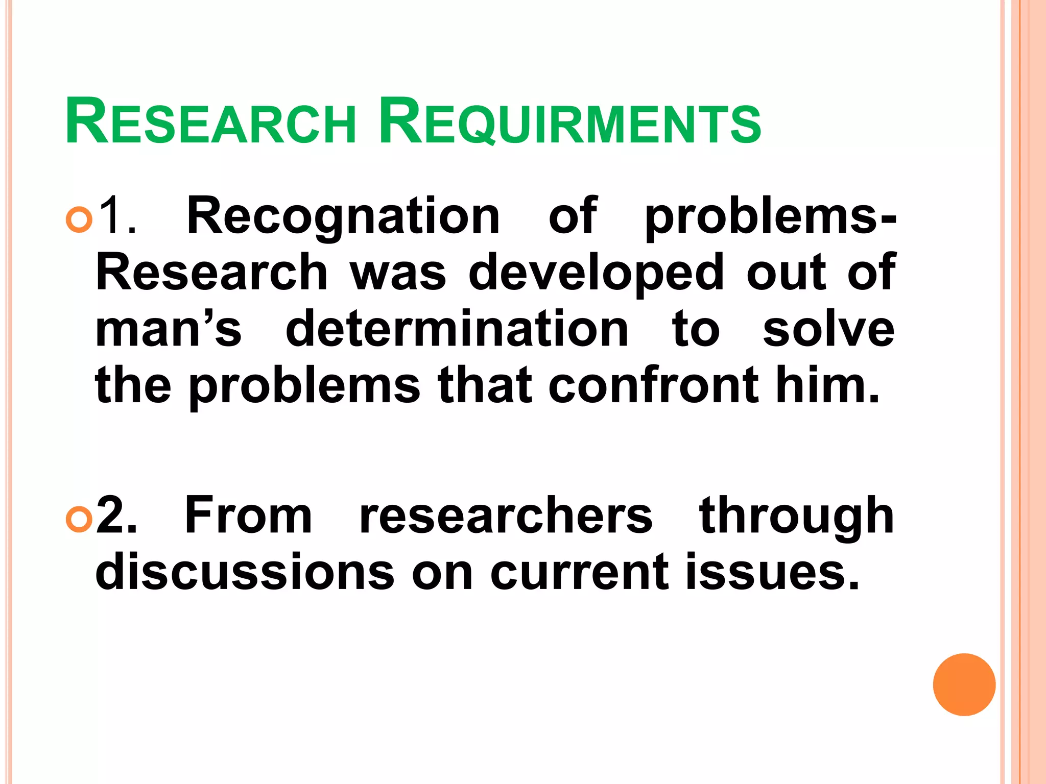 The document provides an overview of the research process, outlining its main parts and requirements. It discusses that research problems arise from unsolved issues and earlier studies needing reinterpretation. The research process involves identifying the topic and problem, methodology, experimentation/data collection, information processing, and report preparation. Key parts of identifying the topic include defining variables, hypotheses, frameworks, and significance. Methodologies can be experimental or descriptive survey-based. Thesis or dissertations apply this process to address research problems.