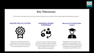 The document discusses overcoming objections in sales, explaining that objections are requests for more information rather than rejections. It provides strategies to handle objections effectively, emphasizing the importance of communication and understanding the customer's concerns. Additionally, it promotes a one-day sales training bootcamp offering various packages and discounts for participants.