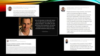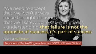 The document provides an overview of overcoming project failure and secrets to mastering success. It discusses the importance of reputation for project managers and how to respond to failure with a growth mindset. It outlines 10 common mistakes project managers make including preparing an ambitious schedule, pretending to know more than you do, and ignoring problems. The document also discusses how to come back from failure through strategies like being honest about mistakes, having patience, and focusing on growth. It emphasizes that mindset is important and shares a parting quote about not being defeated by encountering defeats.