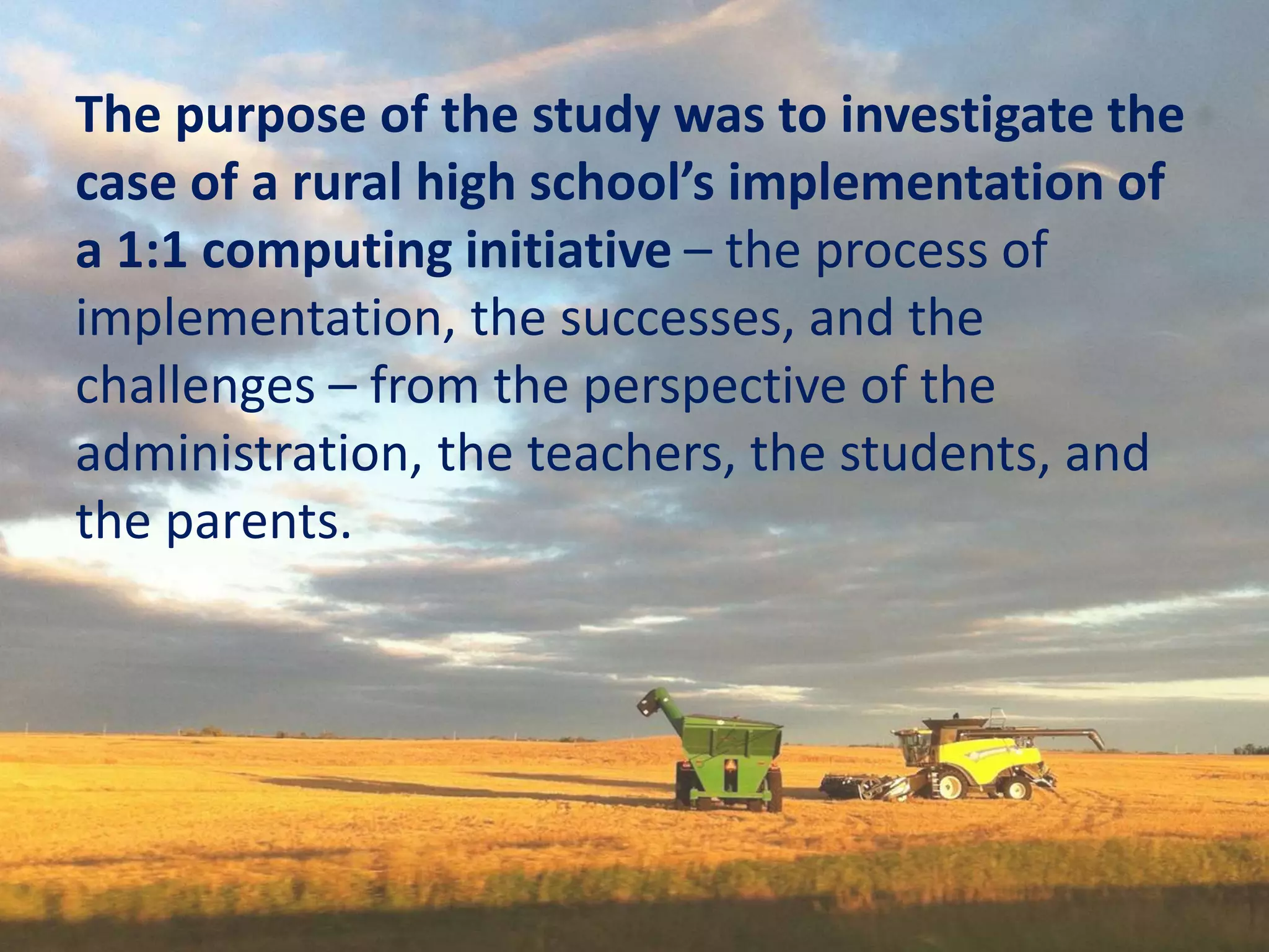 The case study examines the implementation of a 1:1 computing initiative in a rural high school, highlighting successes and challenges faced by administration, teachers, students, and parents. Key issues included technology-related problems, teacher resistance, and the need for a pedagogical shift, while successes were noted in student engagement and creativity. Recommendations emphasized careful planning, communication, and embracing the potential of technology to enhance learning.