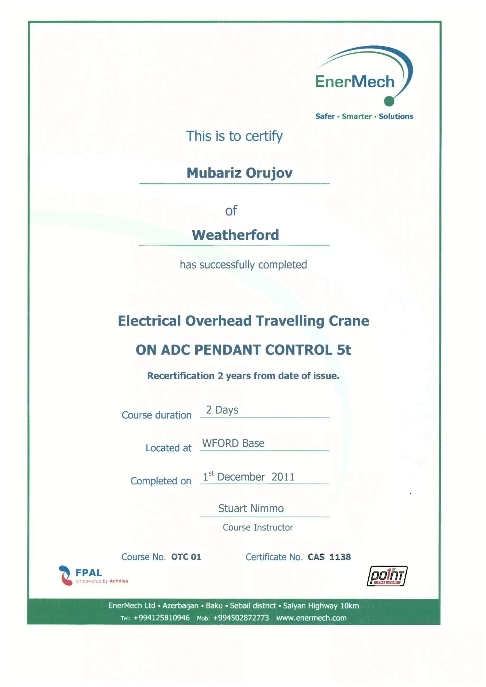 Maintenance of Fleet course
